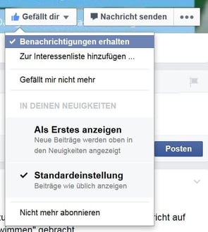 Auf Seiten funktioniert das ähnlich, nur müssen Sie dort auf den "Gefällt-mir-Button" klicken, um ein Häkchen bei "Benachrichtigung erhalten" setzen zu können.