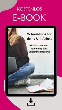 Wenn du in lockerer Folge Tipps für deine Uni- oder FH-Arbeit bekommen möchtest, dann trag dich in meinen Newsletter ein und hole dir mein E-Book mit Tipps für das Abstract, das Vorwort, die Einleitung und die Zusammenfassung.